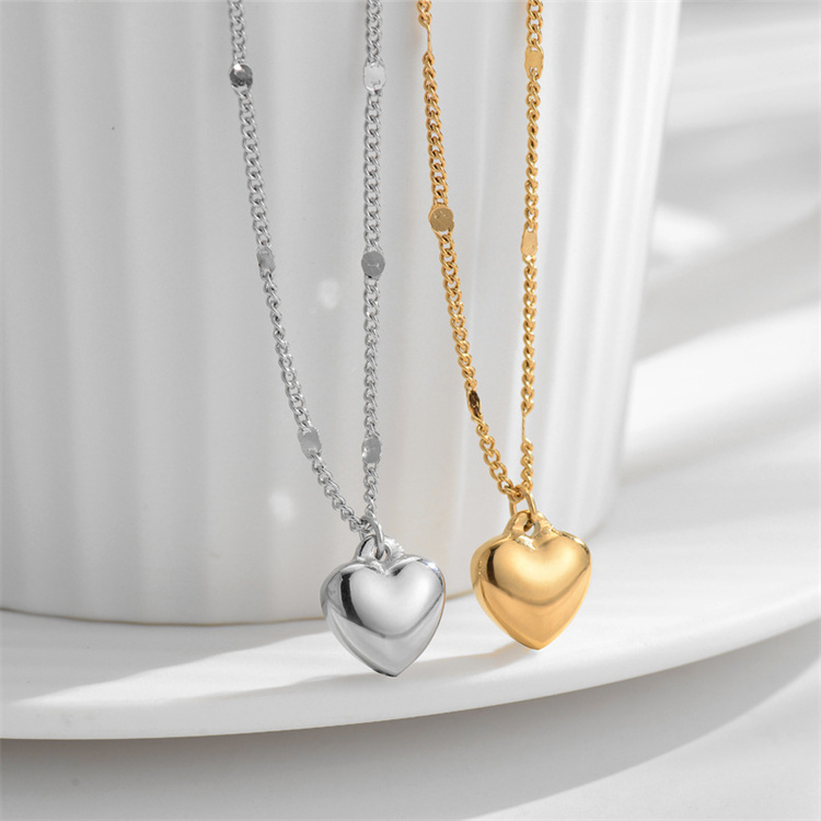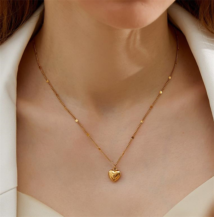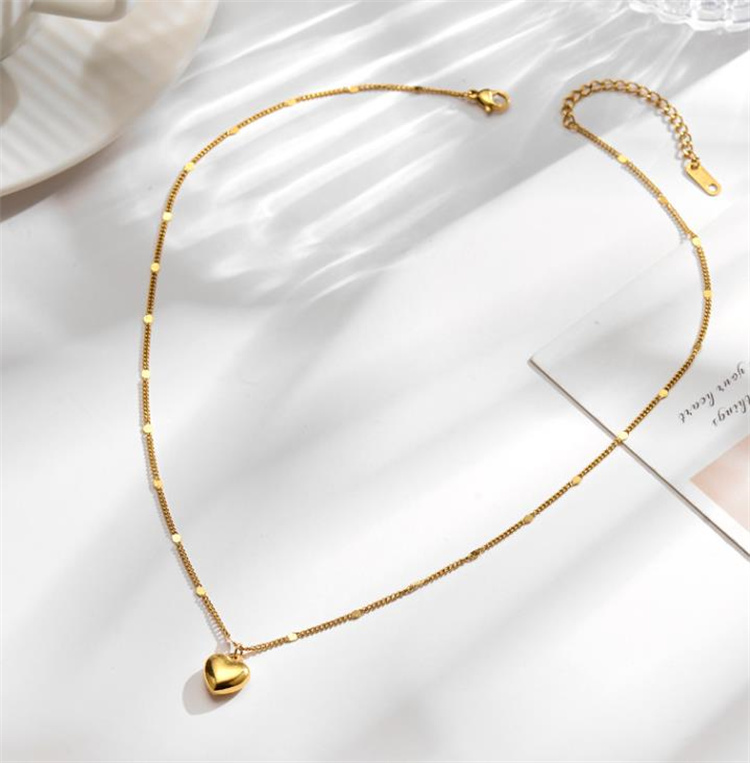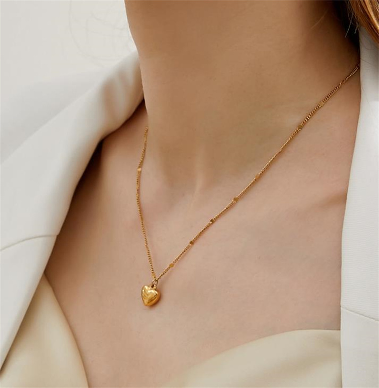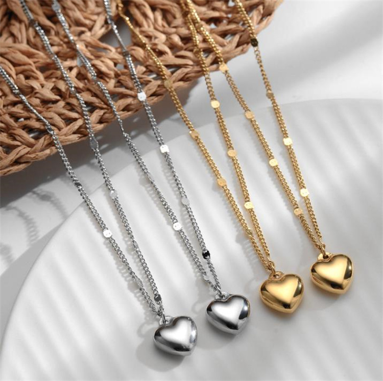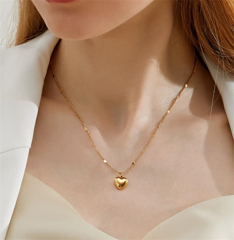 愛らしいハート型のペンダントが特徴的なネックレスです。 チタン鋼素材に金メッキ加工を施し、美しい色合いを長期間保持します。 鎖骨を美しく飾るチェーンデザインで、ペアアクセサリーとしても人気です。 カラー:金色、銀色の2色展開