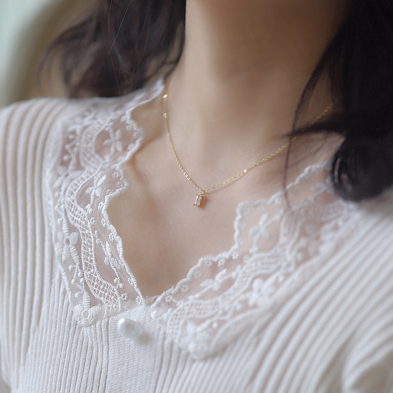 透明感溢れる長方形の輝石が胸元で上品に煌めくペア アクセサリーのネックレスです。