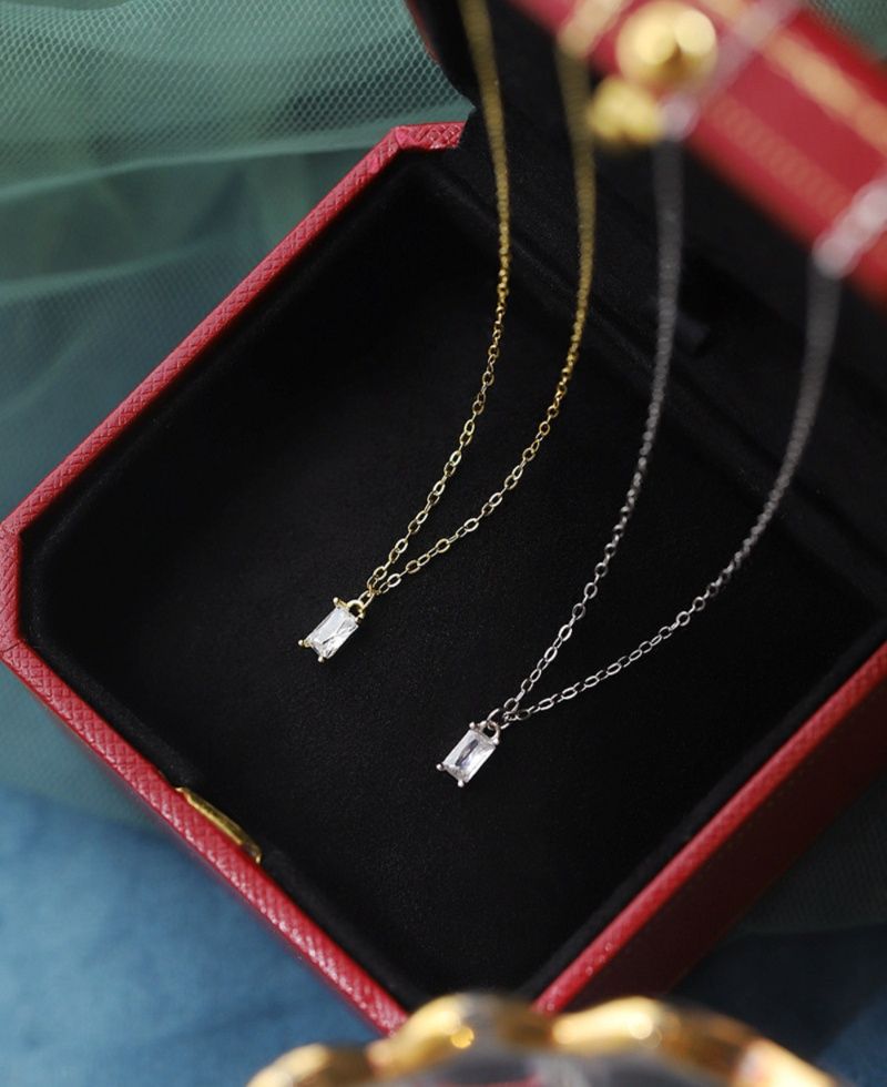 透明感溢れる長方形の輝石が胸元で上品に煌めくペア アクセサリーのネックレスです。 華奢な小豆型チェーンに繊細な輝石を配したデザインは、日常使いから特別な日まで幅広くお使いいただけます。 二人の絆を優しく繋ぐお揃いのネックレスは、大切な方への贈り物や記念日のプレゼントに最適です。 シンプルで洗練された佇まいが、どんな装いにも馴染みやすく、長くご愛用いただけるペアアイテムとなっております。